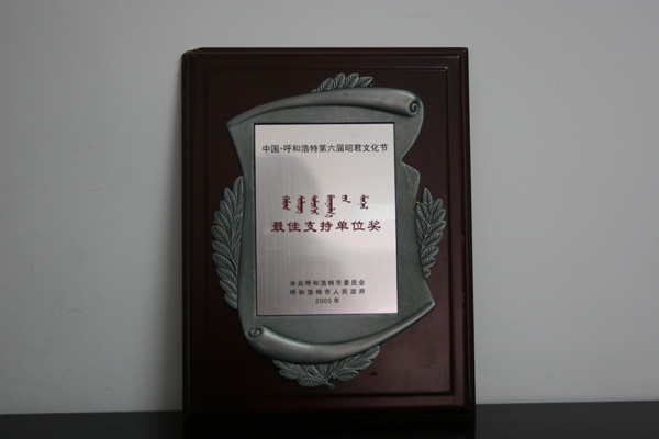 中國·呼和浩特第六屆昭君文化節(jié)最佳支持單位獎