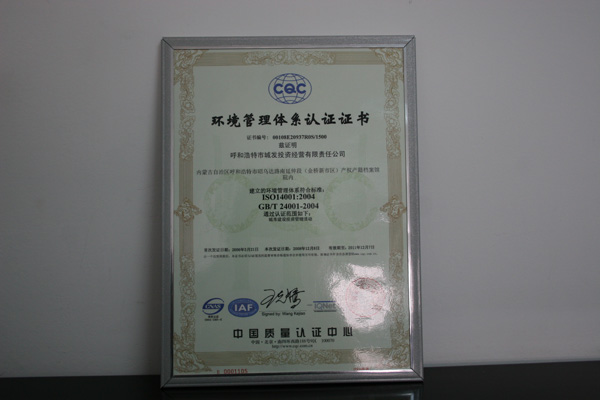 環(huán)境管理體系認(rèn)證證書