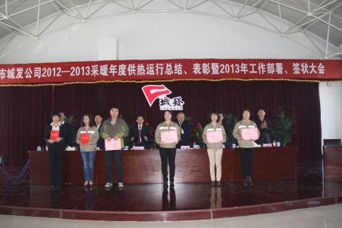 2013年4月28日,城發(fā)公司召開2012—2013采暖年度供熱運(yùn)行總結(jié)、表彰暨2013年工作部署、簽狀大會(huì)