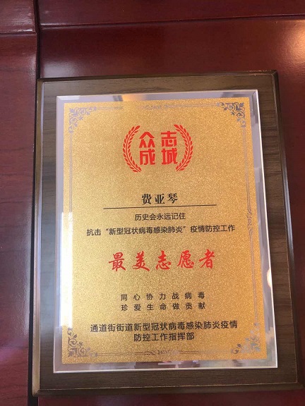 3月16日,城發(fā)公司宣教部費(fèi)亞琴同志被呼和浩特市回民區(qū)通道街疫情防控工作指揮部授予最美志愿者榮譽(yù)稱號(hào)。涓涓細(xì)流匯成滔滔江河。不積硅步,無以至千里;不積小流,無以成江海。一個(gè)的力量雖然有限,但在大家眾志成城的共同努力下,形成的力量足以撼天動(dòng)地,在萬萬千人一齊燃燒自己而形成的熊熊火光中,我們總能看到勝利的曙光,戰(zhàn)爭疫情!費(fèi)亞琴這樣說道。
