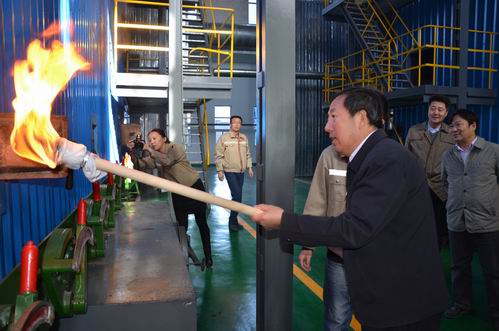 (副市長孫建華在城發(fā)公司辛家營熱源廠為2號爐點(diǎn)火 李波攝)