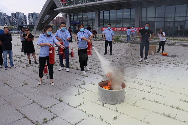安全技術處消防員王騰飛講解滅火器及消防器材的使用方法和注意事項,現(xiàn)場人員都積極參與到消防器材滅火的實操中。