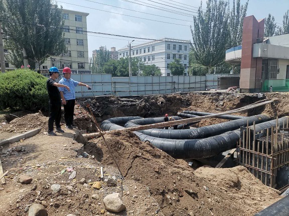 三合村熱源廠廠區(qū)高溫熱水管網(wǎng)工程于2020年4月開工建設,截止到7月22日,DN700、DN1200等管網(wǎng)鋪設、分層回填完畢,待廠區(qū)消防、自來水等管網(wǎng)鋪設完畢再進行路面恢復。