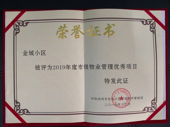 城發(fā)物業(yè)金城小區(qū)項(xiàng)目處在物業(yè)公司領(lǐng)導(dǎo)的指引下,為打造紅色物業(yè)創(chuàng)新經(jīng)營(yíng)模式,強(qiáng)化品質(zhì)管理,提升精細(xì)化、人性化服務(wù)的同時(shí),被呼和浩特市住宅小區(qū)環(huán)境秩序管理局評(píng)為物業(yè)管理2019年度市級(jí)優(yōu)秀項(xiàng)目。