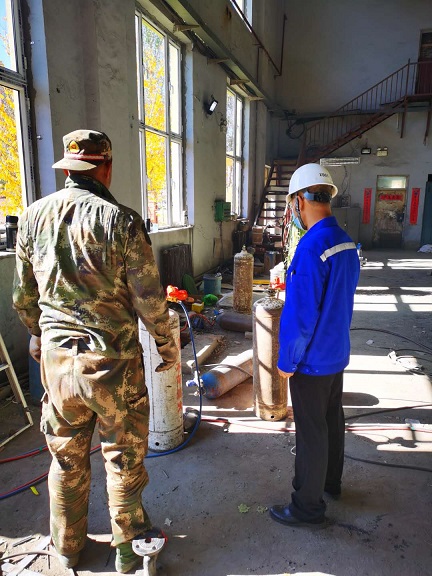 檢查未發(fā)現(xiàn)重大安全隱患。但檢查中發(fā)現(xiàn),供熱管網(wǎng)互聯(lián)互通工程施工現(xiàn)場(chǎng)所用氣瓶未按要求放置,東河苑小區(qū)換熱站施工人員未戴安全帽及違規(guī)用電,四醫(yī)院燃?xì)忮仩t房施工所用乙炔、氧氣瓶安全距離不夠及施工人員未戴安全帽等安全隱患。劉堅(jiān)在現(xiàn)場(chǎng)責(zé)令施工單位和人員按照要求進(jìn)行整改,并下發(fā)整改通知,確保施工安全,杜絕安全隱患。