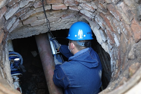 在13號樓進(jìn)出口閥門附近,檢修人員正在二次管網(wǎng)地溝內(nèi)進(jìn)行水力平衡調(diào)節(jié)工作。橋靠分公司第四運(yùn)營所副所長賈超介紹:"在2020-2021采暖期供暖結(jié)束后,所部便開展冬病夏治、供熱設(shè)施維修工作。特別針對老舊小區(qū)供熱系統(tǒng)二次網(wǎng)冷態(tài)平衡調(diào)節(jié)制定了一系列方案與措施;運(yùn)營所各班組提前對各小區(qū)熱力站除污器、用戶濾網(wǎng)等進(jìn)行了全面細(xì)致的清洗工作,以確保熱力站、二次網(wǎng)及用戶供熱系統(tǒng)無堵塞、阻力無異常。為新采暖期供熱及確保各小區(qū)水力調(diào)節(jié)工作做好充分的準(zhǔn)備。"