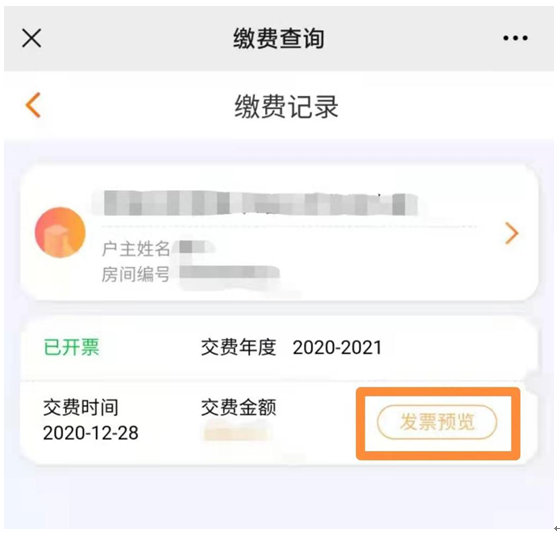 ⑦驗證之后即可查詢房屋繳費記錄,在該頁面點擊發(fā)票預覽
