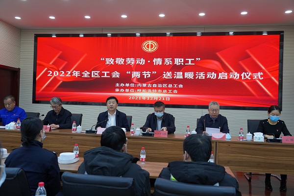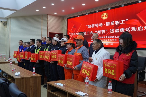 為深入貫徹黨的十九屆六中全會(huì)精神和自治區(qū)第十一次黨代會(huì)精神,不斷深化"我為群眾辦實(shí)事"實(shí)踐活動(dòng)成果。12月21日上午,以"致敬勞動(dòng)情系職工"為主題的2022年全區(qū)工會(huì)"兩節(jié)"送溫暖活動(dòng)啟動(dòng)儀式在城發(fā)橋靠分公司舉行,儀式上為來自供熱、環(huán)衛(wèi)、快遞、交警、公交及疫情防控、社區(qū)等各行各業(yè)的近50名一線職工代表發(fā)放慰問品,送上黨和政府的關(guān)懷、工會(huì)組織的溫暖。呼市總工會(huì)黨組書記、副主席汪俊亭主持啟動(dòng)儀式。