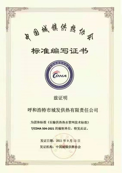 近日,集團公司收到參與《長輸供熱熱水管網(wǎng)技術標準》編寫證書。