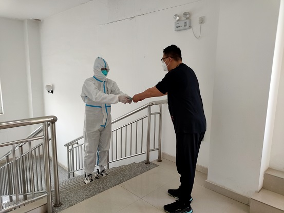 4月16日,城發(fā)惱包物流園區(qū)內(nèi)一名外省來我市的韻達(dá)司機(jī)被確定為新冠肺炎無癥狀感染者。集團(tuán)公司高度重視,第一時間啟動應(yīng)急處置預(yù)案,當(dāng)天集團(tuán)公司主要領(lǐng)導(dǎo)立刻深入園區(qū)開展疫情防控工作部署,并在現(xiàn)場召開了調(diào)度會,安排部署疫情阻擊相關(guān)工作。為阻斷疫情蔓延、擴(kuò)散,確保隔離點安全、規(guī)范運行,惱包物流園區(qū)封控管理期間,集團(tuán)公司領(lǐng)導(dǎo)每天至少一次深入園區(qū)指導(dǎo)防疫工作,有時甚至三次。