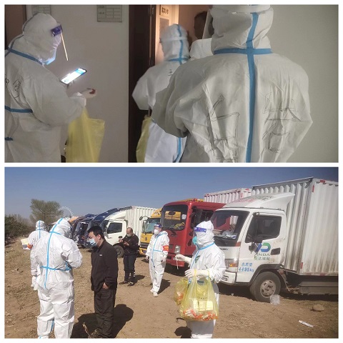 4月18日早7點(diǎn),城發(fā)物業(yè)公司抽調(diào)郝曉東、白巖、烏力更三位同志前來支援惱包物流園區(qū)防疫工作,他們的抗疫工作任務(wù)是惱包園區(qū)內(nèi)北側(cè)露天停車場(chǎng)貨運(yùn)車輛管控,負(fù)責(zé)對(duì)57輛貨運(yùn)車輛及71位司機(jī)進(jìn)行防疫管控,登記排查車輛信息、餐食發(fā)送、體溫監(jiān)測(cè)、人員管控。疫情防控期間,他們不畏艱辛、勇于向前,開展核酸檢測(cè)工作490余次、體溫檢測(cè)210余次、共計(jì)發(fā)放餐食350余人次。在21日完成停車場(chǎng)人員分流管控工作后,22日接到新的防疫工作指令,隨即又沖向一線,開展3棟信息樓共300余人體溫監(jiān)測(cè)、日常信息報(bào)送等防疫工作,24日順利完成所有的防疫工作。