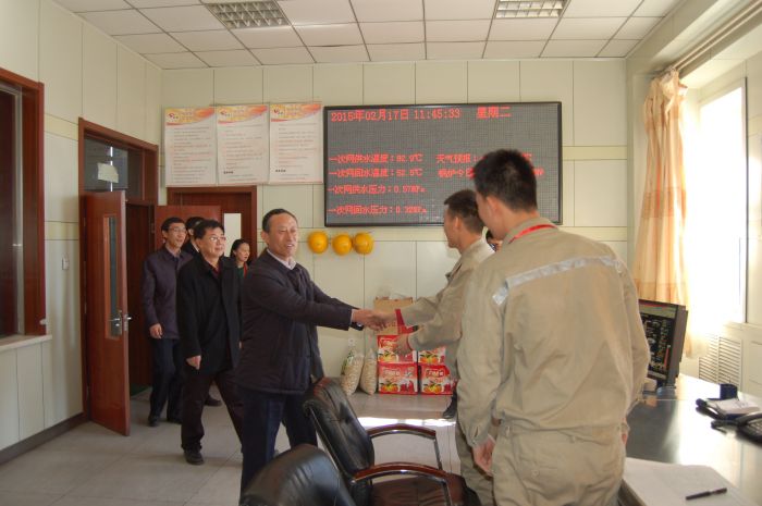 臘月二十九,黨委書(shū)記、總經(jīng)理張瑞平,黨委副書(shū)記、工會(huì)主席張永,黨委委員、副董事長(zhǎng)杜雄勇,黨委委員、副總經(jīng)理史繼文4人率隊(duì),分別到四個(gè)供熱分公司,深入車間、運(yùn)營(yíng)所、收費(fèi)大廳、熱力站,對(duì)一線員工進(jìn)行了慰問(wèn)。(文/亞利)