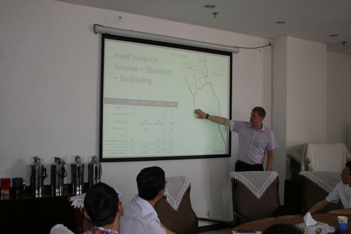 在為期半天的會(huì)議中,城發(fā)公司副總經(jīng)理吳利勤向?qū)<医榻B了項(xiàng)目的進(jìn)展情況和下一步工作計(jì)劃,供熱專家邁克爾演示了其水力分析和計(jì)算結(jié)果,城發(fā)公司相關(guān)技術(shù)人員與各專家就邁克爾的分析和計(jì)算進(jìn)行了討論和交流。