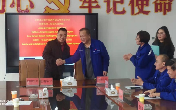3月29日上午,城發(fā)公司與國電華北國際電力工程(北京)有限公司、北京瑞特愛能源科技股份有限公司聯(lián)合體簽訂內(nèi)蒙古呼和浩特市低碳供熱項目--辛家營、金橋、毫沁營區(qū)域集中供熱工程項目(供熱亞行貸款項目)第17包采購合同。