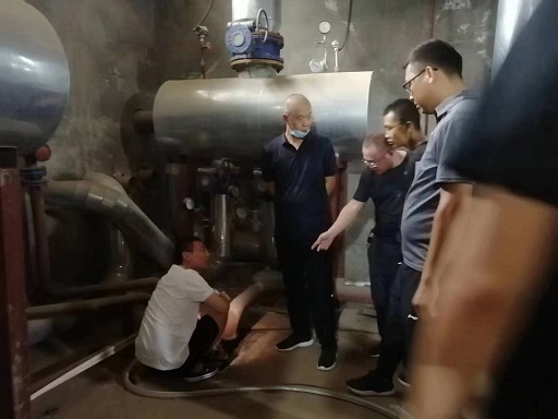 走訪中,每到一個運營所首先查看了當天人員值班情況,并仔細地詢問了各所防汛物資準備情況。在理想佳苑熱力站和所里工作人員一起查看了地下站的積水坑和備用排污泵情況。在中海錦繡城熱力站和宇泰熱力站查看了站內(nèi)滲漏點,并要求運營所負責(zé)人盡快和物業(yè)聯(lián)系,解決滲水點存在的安全隱患,要即刻做好設(shè)備的防滴漏防水保護。在檢修所一次網(wǎng)抽水現(xiàn)場作業(yè)現(xiàn)場,要求近兩天停止抽水作業(yè),保證施工作業(yè)安全,同時將工作重心轉(zhuǎn)移到近兩天防汛排水保障搶險任務(wù)中。
