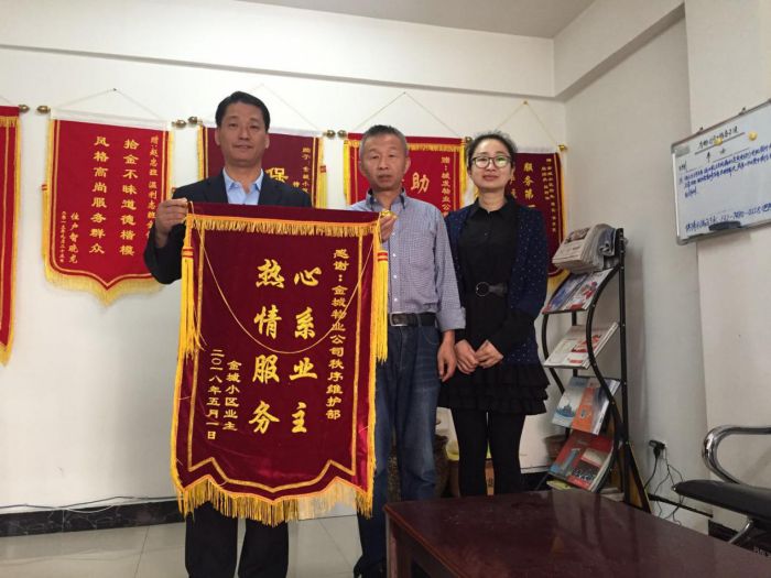 在大家的共同努力下,物業(yè)服務(wù)品質(zhì)提升百日行動工作得到了業(yè)主的好評與支持,項目處先后收到業(yè)主送來的三面寫有急業(yè)主所急 幫業(yè)主所需、心系業(yè)主 熱情服務(wù)、服務(wù)第一全心為民 客戶至上暖至人心的錦旗。