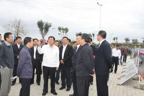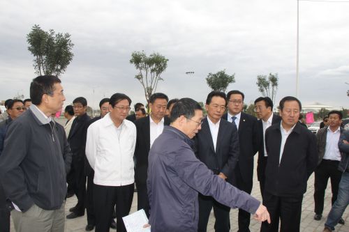 2012年9月12日,中國農(nóng)業(yè)發(fā)展銀行領(lǐng)導一行來我市考察東客站項目工程,市長秦義、副市長孫建華等陪同考察。圖為公司副總經(jīng)理史繼文介紹東客站項目建設(shè)情況。