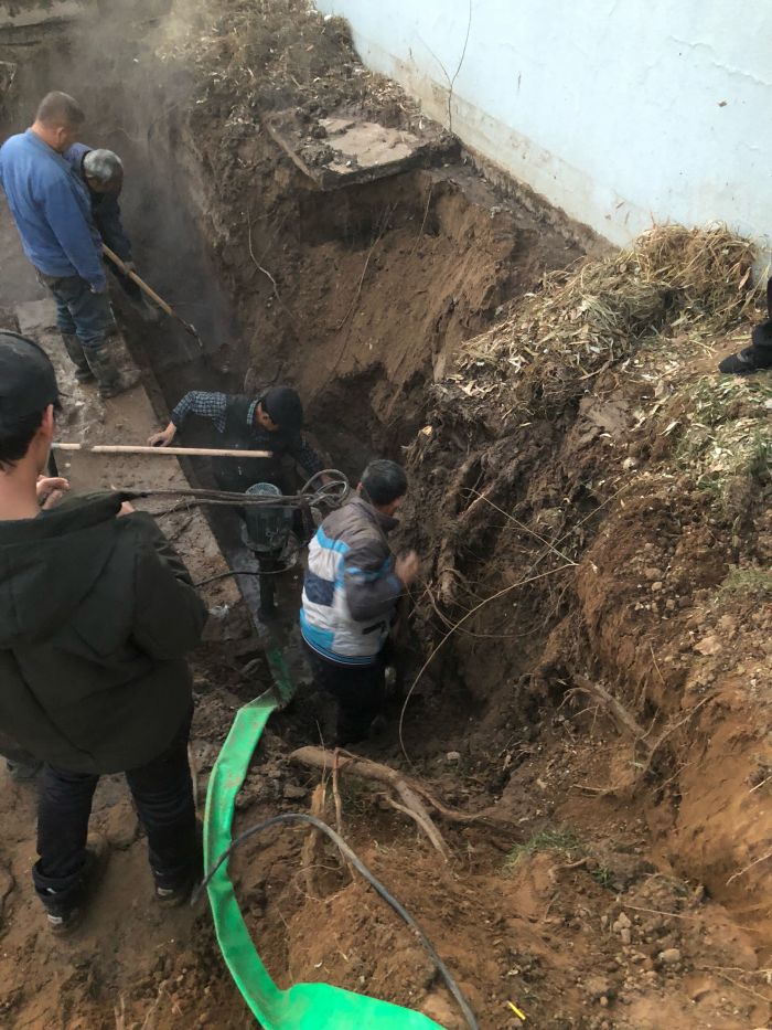 11月11日下午,中繼泵房專項(xiàng)高壓電閃落,1#、2#、3#循環(huán)泵因自動(dòng)保護(hù)驟停。出現(xiàn)異常后,調(diào)度立即通知京能電廠降頻,檢修車間立即組織人員進(jìn)行巡線,經(jīng)過15個(gè)小時(shí)不間斷排查,12日上午,發(fā)現(xiàn)如意舊網(wǎng)主線和1#站支線漏水嚴(yán)重。分公司檢修車間、運(yùn)營二所和保駕護(hù)航單位迅速制定搶修方案組織搶修,經(jīng)理丁成斌、副經(jīng)理鄭紅飛親自到現(xiàn)場指導(dǎo)搶修工作。為準(zhǔn)確找到失水點(diǎn),搶修人員穿著隔熱服進(jìn)入管溝內(nèi)查找漏點(diǎn)。由于漏水點(diǎn)管線錯(cuò)綜復(fù)雜,施工難度非常大。接近管道時(shí),發(fā)現(xiàn)漏點(diǎn)位置靠近井壁且管道腐蝕嚴(yán)重,壁厚較薄,采取整理外層補(bǔ)焊的方式進(jìn)行修補(bǔ)。