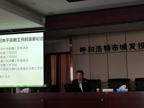 11月5日,城發(fā)公司黨委邀請市黨校黨史黨建教研室副教授、內(nèi)蒙古習(xí)近平新時代中國特色社會主義思想研究中心研究員蘇航同志在公司18樓會議室開展了“扎實做好新時代我區(qū)宗教工作——全面貫徹習(xí)總書記關(guān)于宗教工作重要論述”的專題講座。公司領(lǐng)導(dǎo)班子、全體中層干部約90人進行了集中學(xué)習(xí)。