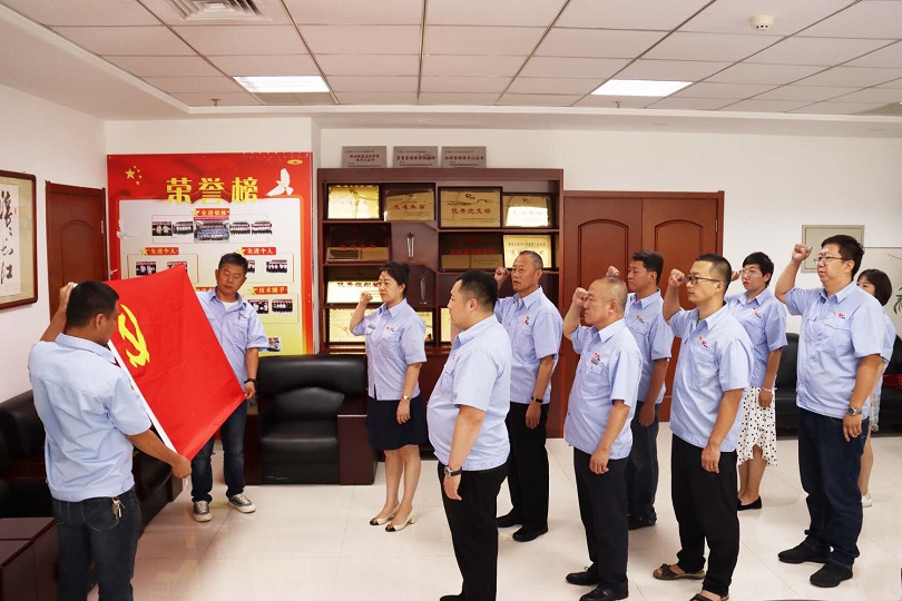 物業(yè)公司黨支部按照發(fā)展黨員的組織程序,吸收新鮮血液,充實了組織力量,今年按期轉正1名黨員,吸收了1名預備黨員。組織委員郝曉東同志為預備黨員史濤同志佩戴了黨徽,面對鮮紅的黨旗,在領誓人娜仁同志的逐句領讀下,史濤用慷慨激昂的語氣,莊嚴向黨旗宣誓,表達對黨的忠誠、為共產主義奮斗終身的決心,并表示,一定會珍惜共產黨員的光榮稱號,不負使命,立足崗位、踏實工作、謹守誓言、履行黨員義務,為黨增光添彩!