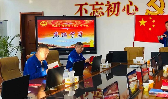 “我宣誓:忠于中華人民共和國憲法,維護憲法權(quán)威,履行法定職責……”隨著國歌嘹亮奏響后,黨委委員、總經(jīng)理呂德育親自領(lǐng)誓,黨委副書記張永監(jiān)誓,其他宣誓人在領(lǐng)誓人身后列隊站立,全體面向國旗,左手緊捧憲法,右手舉拳,跟誦誓詞,向憲法莊嚴宣誓。隨后,班子成員進行了憲法學習活動,集體觀看了《憲法知識視頻講堂》,從憲法的“內(nèi)容、原則、意義、作用”到“修正后的規(guī)定”等方面進行了學習。