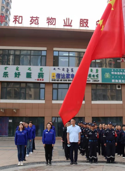 9月27日上午,城發(fā)物業(yè)公司黨支部聯(lián)合呼市住房保障和房屋管理局經(jīng)營管理處祥和苑公租房管理站在祥和苑公租房小區(qū)舉行“我和我的祖國——升國旗、唱國歌”獻禮中華人民共和國成立72周年活動。黨員、干部、職工共40余人參加此次活動。