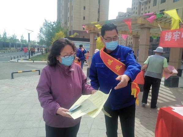 活動(dòng)現(xiàn)場(chǎng),黨支部書(shū)記娜仁按照既定方案,帶領(lǐng)大家分頭行動(dòng)起來(lái)。“民族政策宣傳組”的隊(duì)員們一邊向過(guò)往的居民發(fā)放黨的民族理論和民族政策宣傳單,一邊做好現(xiàn)場(chǎng)宣傳講解,重點(diǎn)宣傳了黨的民族政策的主要內(nèi)容、民族平等政策的內(nèi)涵、民族區(qū)域自治政策的內(nèi)涵、現(xiàn)階段我國(guó)民族工作的主題、現(xiàn)階段發(fā)展少數(shù)民族經(jīng)濟(jì)的方針、民族團(tuán)結(jié)關(guān)系的“三個(gè)離不開(kāi)”內(nèi)容、民族團(tuán)結(jié)工作的“四個(gè)維護(hù)”內(nèi)容及習(xí)近平總書(shū)記對(duì)各民族提出的“五個(gè)認(rèn)同”等內(nèi)容;講解了如何理解“中華民族共同體意識(shí)”、如何理解“推廣普及國(guó)家通用語(yǔ)言文字教育”等內(nèi)容。“安全防火宣傳組”的隊(duì)員們分三組入樓開(kāi)展安全防火宣傳檢查,重點(diǎn)對(duì)樓道內(nèi)個(gè)別存在的亂堆放雜物、亂停非機(jī)動(dòng)車(chē)及擅自占用、堵塞消防通道的住戶張貼清理通知單、宣傳將樓道占為己用的重大安全隱患,并告知業(yè)主限期自行清理,切實(shí)保障廣大業(yè)主的居住安全和環(huán)境衛(wèi)生。