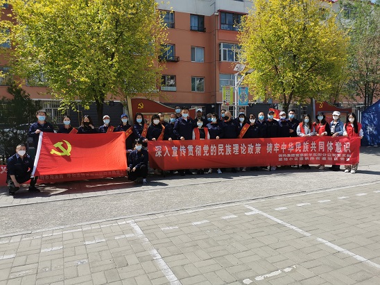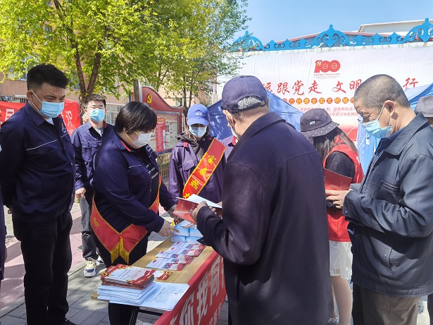 活動現(xiàn)場,廣大黨員向社區(qū)居民發(fā)放了《內(nèi)蒙古自治區(qū)促進民族團結(jié)進步條例》等宣傳資料,并通過懸掛橫幅、設(shè)立宣傳臺、發(fā)放宣傳資料、主題宣講等多種形式,大力宣傳民族政策、法律法規(guī)以及民族團結(jié)基本知識,加深了社區(qū)居民對民族政策及法律法規(guī)的認識,進一步凝聚了民族團結(jié)進步正能量,為推進民族團結(jié)進步工作創(chuàng)新發(fā)展起到了積極作用。