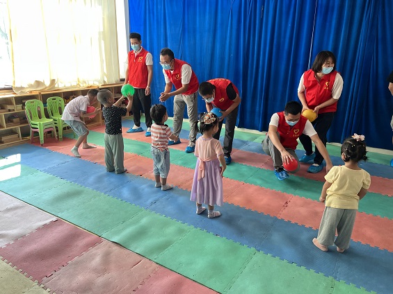 活動(dòng)現(xiàn)場(chǎng),愛心小分隊(duì)一行將精心準(zhǔn)備的慰問(wèn)品送到孩子們的手中,與他們親切交談,參觀孩子們學(xué)習(xí)、生活的環(huán)境,詳細(xì)了解孩子們的學(xué)習(xí)、生活狀況。隨后,愛心小分隊(duì)與孩子們進(jìn)行了搶板凳、接皮球等互動(dòng)游戲,在歡聲笑語(yǔ)中,志愿者與孩子們結(jié)下了深厚的友誼。